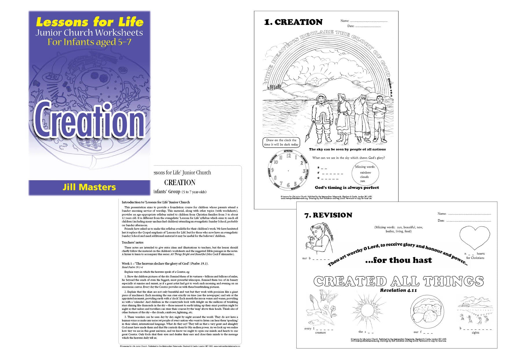 This is part of Lessons for Life Junior Church, Infants (suggested ages 5-7). Total 7 topics. Contains notes for teachers and worksheets for children. Can be copied for local use.