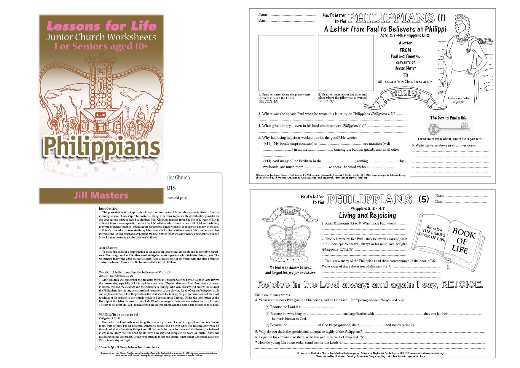 This is part of Lessons for Life Junior Church, Seniors (suggested ages 10 and over). Total 8 topics. Contains notes for teachers and worksheets for children. Can be copied for local use.
