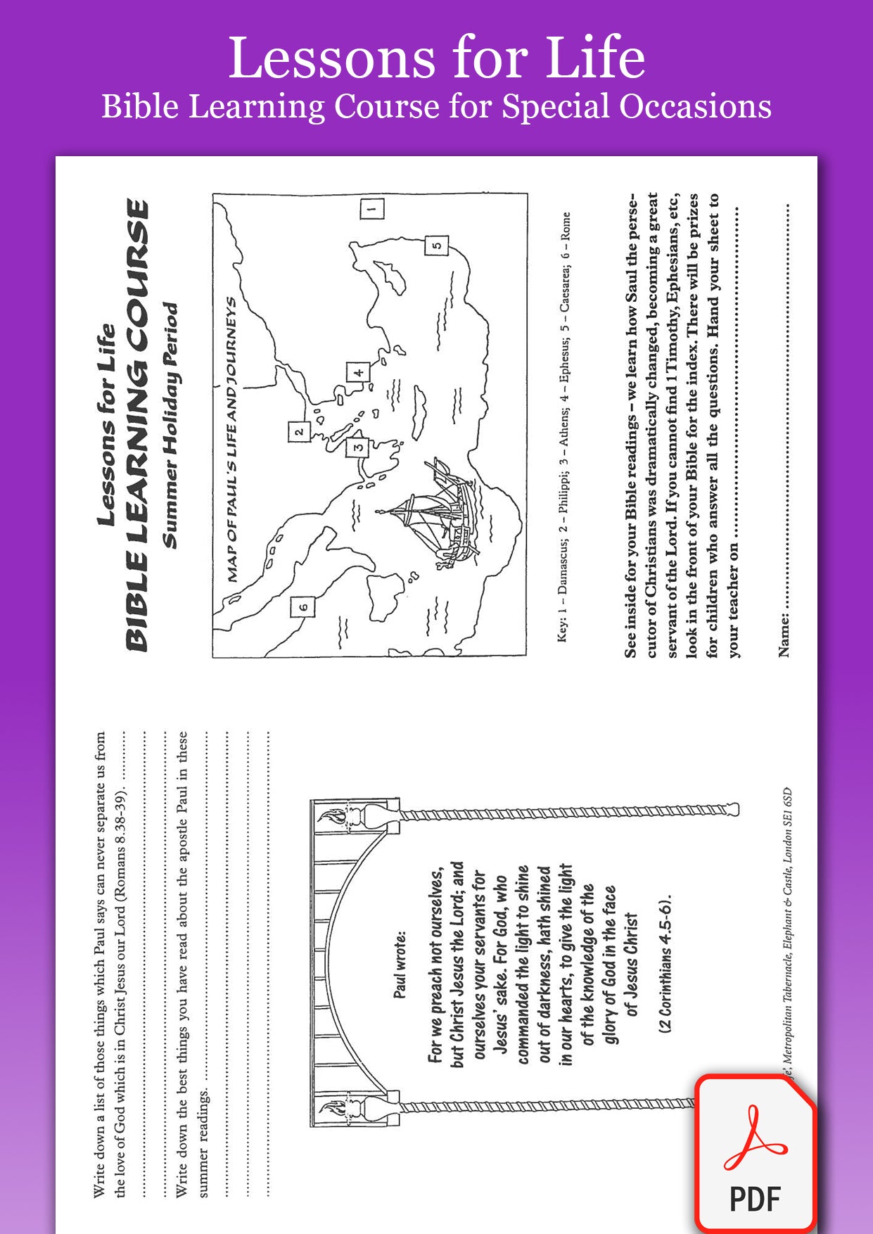 Lessons for Life Bible Learning Course Sheets for Special Occasions - Electronic PDF Version