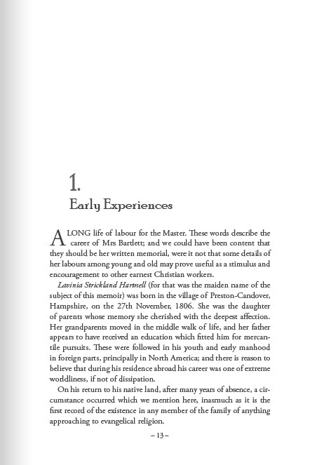 When Lavinia Bartlett took on the small girls’ Bible Class in her church to cover an absent teacher for just a few weeks, she could not have imagined that it would become her life’s work and calling. The class quickly grew with attendances increasing to several hundred each week. Many of the young women taught by her were converted and joined the church. As a result of the size of the class and the many girls saved, Mrs Bartlett’s Bible Class became renowned. Her passion for souls, straightforward gospel reasoning, prayer and devotion to her girls were used by God and are an example for us to follow.