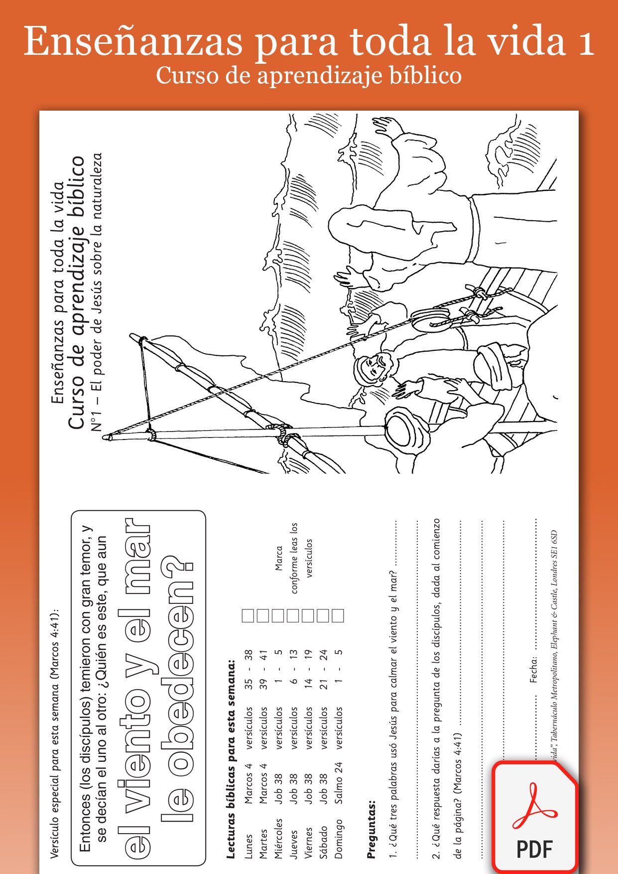 PDF version of take-home leaflets to accompany Spanish Lessons for Life 1 lessons. Outline picture for colouring by children, questions, hymn verse and Bible readings. May be freely photocopied for local use.